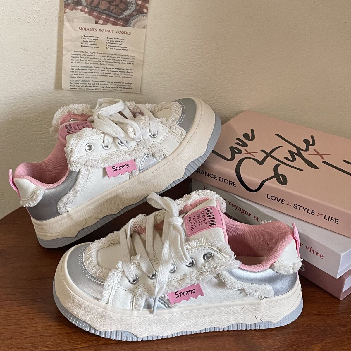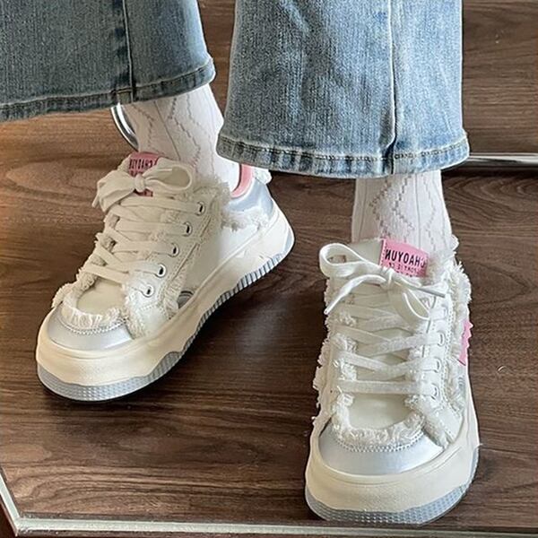2025新作 フリンジスニーカー 靴 シューズ 紐靴 スタイルアップ 厚底 可愛い 脚長