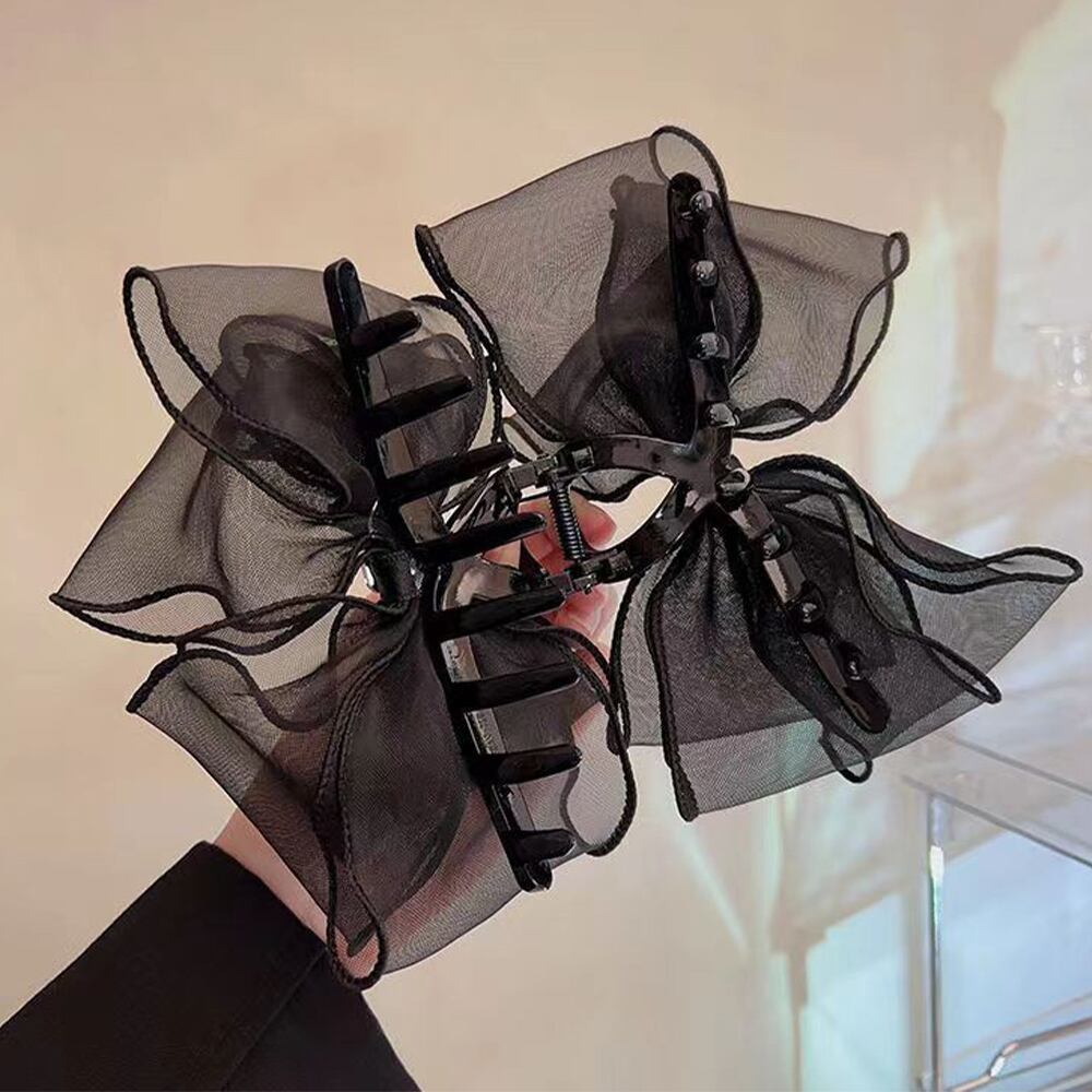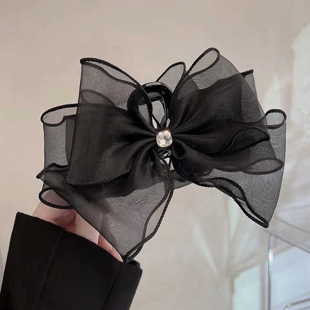 【日本倉庫即納】 リボンヘアクリップ 大きめ黒 レディース